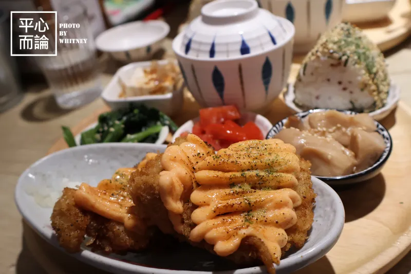 我點了飯糰定食中的“炙燒明太子腰內豬排”,