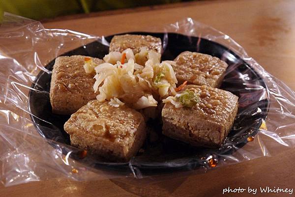 淋上醬汁的脆皮臭豆腐口感還算不賴