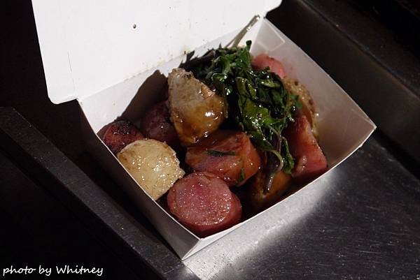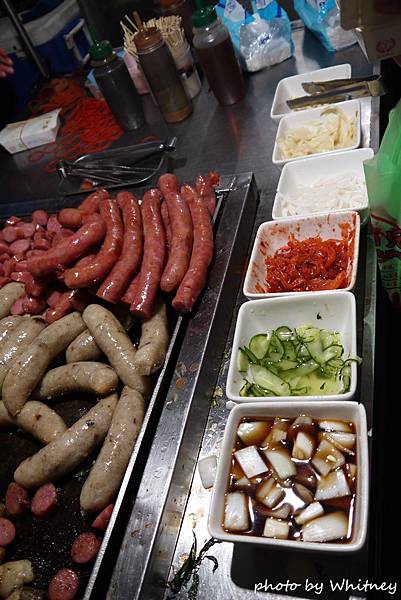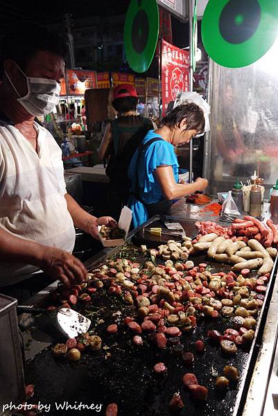 將香腸與大腸切片拌炒的”紅妃香腸大腸”