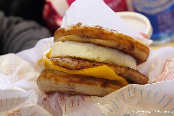 我們選了鬆餅漢堡加起司、蛋跟漢堡肉的口味