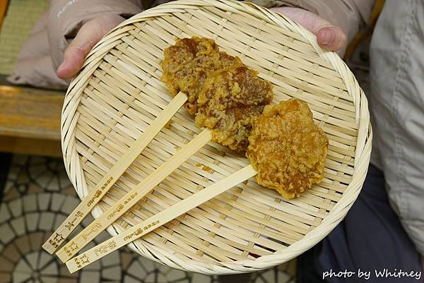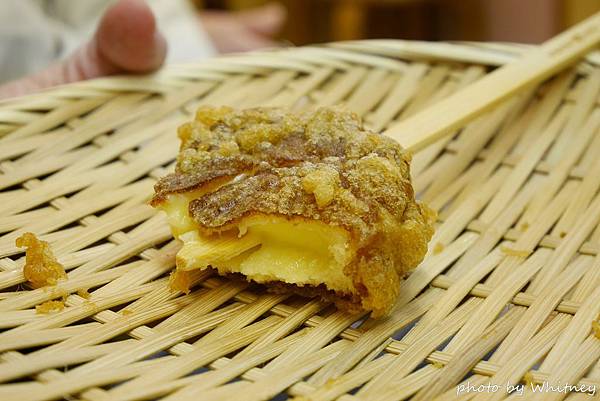 所謂的炸紅葉饅頭其實是將紅葉饅頭裹粉油炸 再用竹籤串著吃