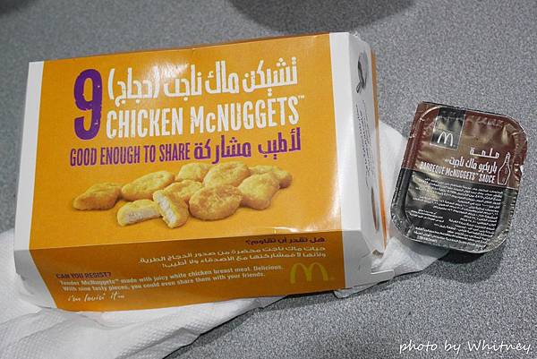 搭配雞塊的醬料並非糖醋醬而是BBQ醬