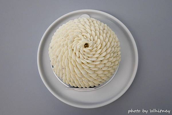 香草塔用了香草蛋塔、香草蛋糕、大溪地香草甘納許及杏仁黑豆蔻香草醬