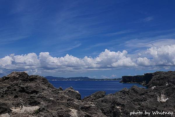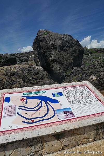 在這珊瑚礁斷崖上我發現了立有解說牌的岩石