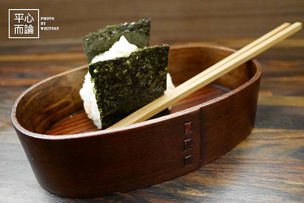 飯糰用木便當盒盛裝上桌