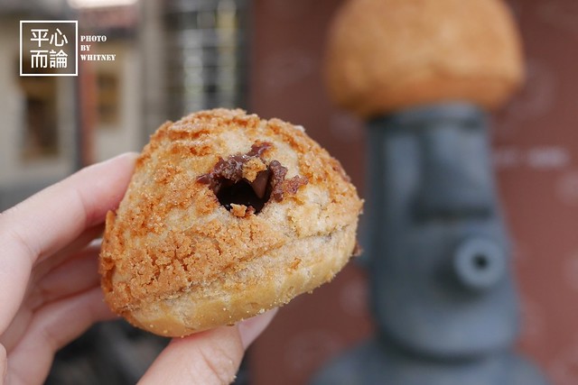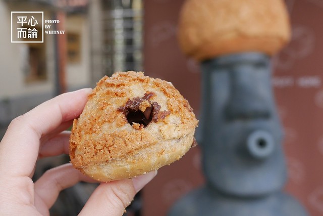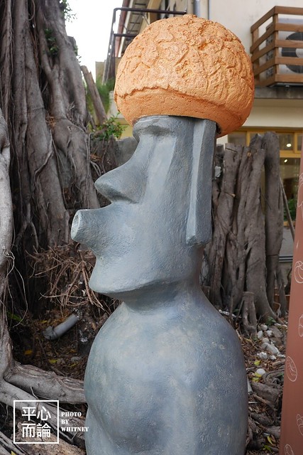 妙的是摩艾頭上還頂著一顆巨大泡芙