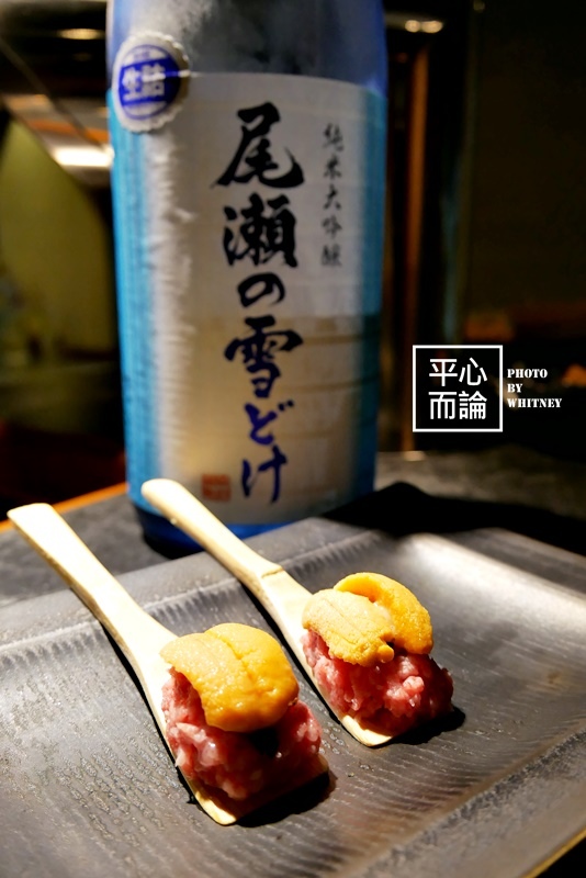 店員並建議可以搭配夏季限定清酒”尾瀨雪融 夏吟 純米大吟釀”享用