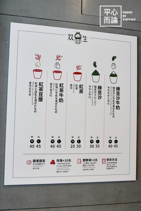 飲料的甜度皆為固定並可加價$10加珍珠