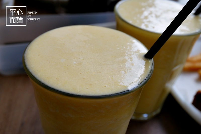 我點的是蘋果、柳橙、鳳梨打成的”黃果汁”