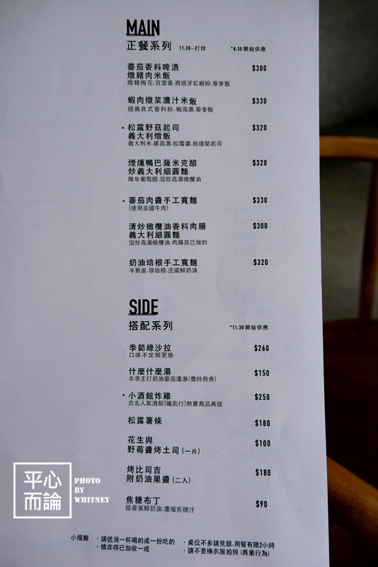 正餐與搭配系列則是上午11點半後供應