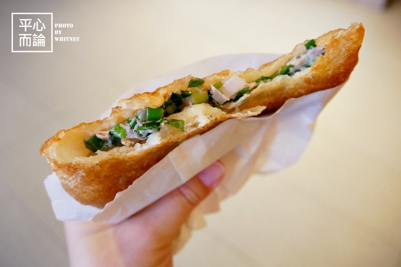 金黃酥脆的餅皮裡包著青蔥、豬肉混合的內餡