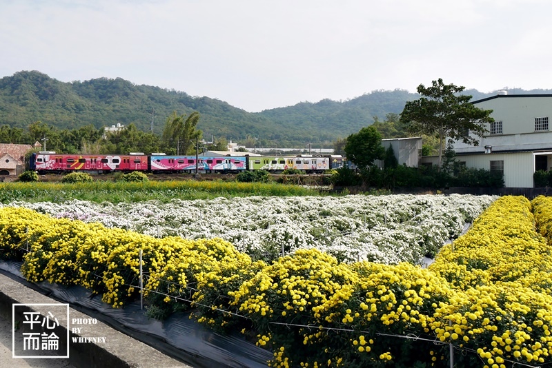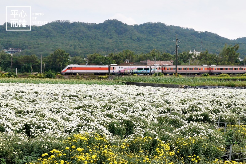此外這邊可以捕捉到火車從花田後方行駛而過的畫面