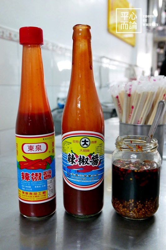 桌上還有大明辣椒醬、東泉辣椒醬及生辣椒醬油可隨個人喜好添加,