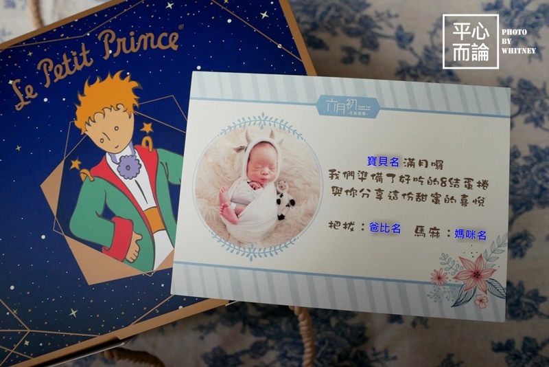 提盒內有一盒40入蛋捲及一張彌月小卡