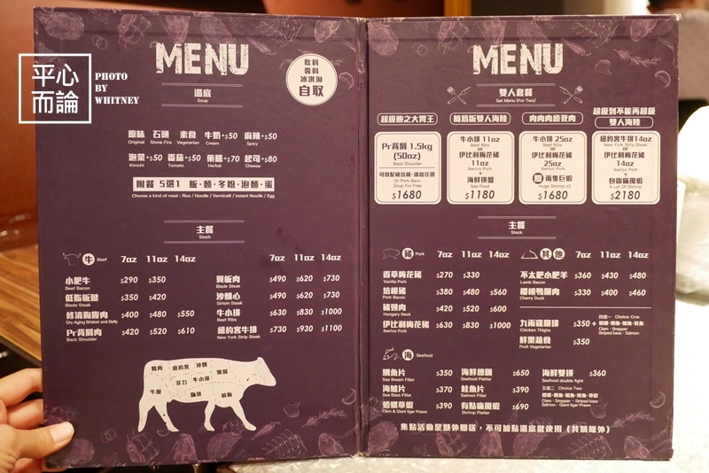 個人套餐肉品提供7oz、11oz、14oz三種份量