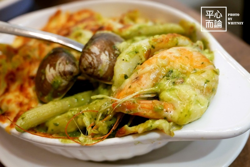“總匯海鮮焗烤麵”我一樣點青醬口味