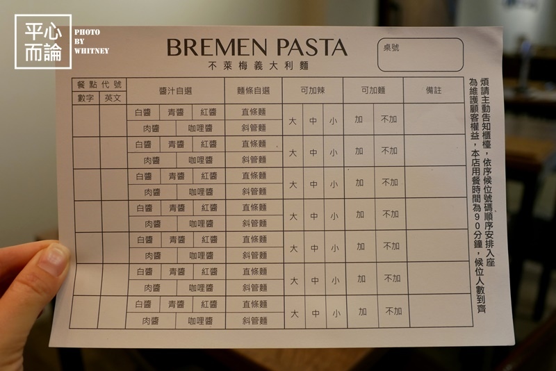 仔細瞧瞧”不萊梅義大利麵”菜單